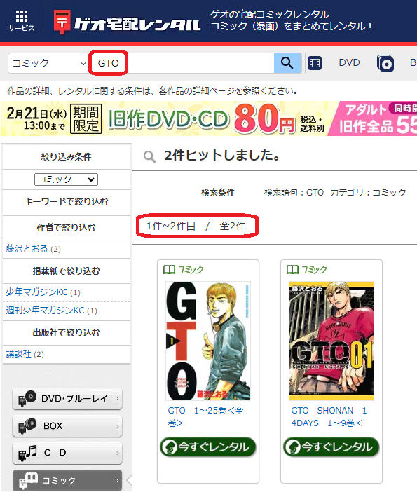 アドレス:https://rental.geo-online.co.jp/search2/?c=comic&q=GTO